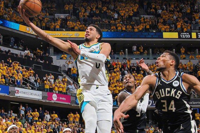 所以在最后的40秒时间内,雄鹿队不断失误,被步行者扔进2个三分球。而最后时刻,步行者核心哈里伯顿持球面对字母哥,一个变向过掉后上篮命中,完成准绝杀,只给雄鹿留下了不到2秒的时间!最终,步行者119-118险胜雄鹿!这么一来,步行者首轮4-1绅士横扫雄鹿队晋级次轮,而且连续两年在季后赛首轮淘汰雄鹿队!这场生死战,字母哥全场空砍30分20篮板13助攻的大号三双数据,可以说是燃尽了自己的一切。而特伦特再次戴上了利拉德的‘手表’,全场狂轰33分,但是关键时刻出现致命的低级失误,一个轻松接球竟然脱手出界……